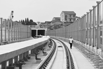 地铁蔡甸线与4号线二期衔接,线路从黄金口站引出后由高架逐渐进入地下 长江日报记者李永刚 摄