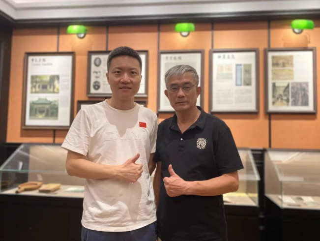 林汉桥(右)和记者的合影