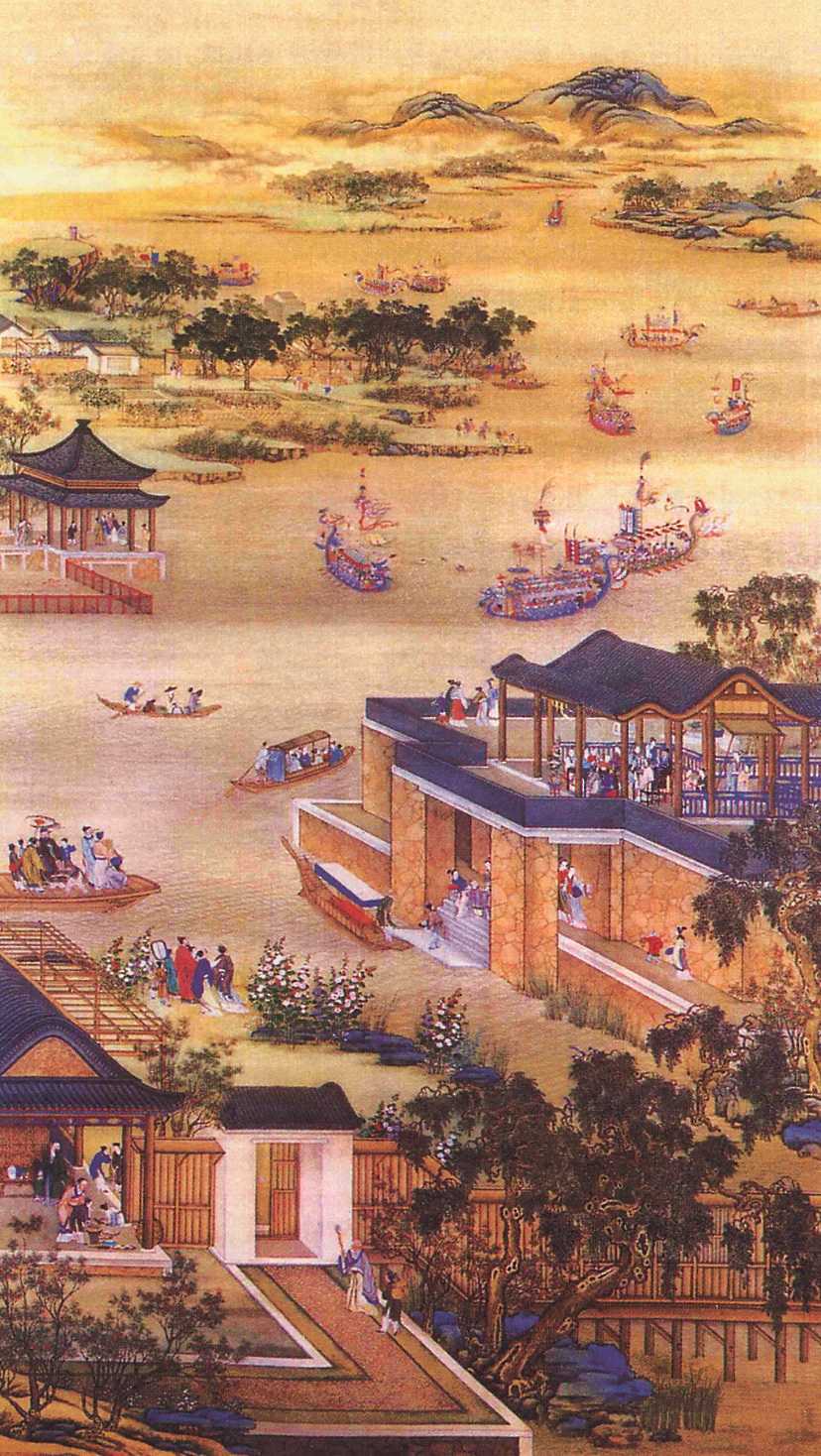 清中叶,浙江余姚人叶调元两度流寓汉口,就其所见所闻,写下众多“眼前无字不传神”的汉口竹枝词,也包括数首赛龙舟竹枝词,为研究此俗保留下颇具价值的参考史料。其时,武汉划龙船选手的组成与装束很有特色,叶调元在《汉口竹枝词》中明言:“划船水手四五十、五六十不等,不待雇募,闻鼓自来;皆扎包巾,穿半臂,各如龙色。出此费者,谓之标船。河岸搭抬挂红,本船开头、停泊,必吹打、放炮,以助声势。此小河(即汉水)竞渡之大略也。”赛龙舟时,各船上“指挥”挥动令旗,调度水手动作频率。水手跟着鼓音节奏,动作整齐划一,奋力向前划行。叶调元亦有诗为证:“舵手篙工共逞奇,桨声要与鼓声齐。指挥独立高台上,辛苦无如□磨旗。”对于龙舟竞赛的浩大声势,叶调元更有着精彩描述:“万桡齐举水飞空,两岸喧呼助势雄。抢罢对江船渐散,小河一片夕阳红。”