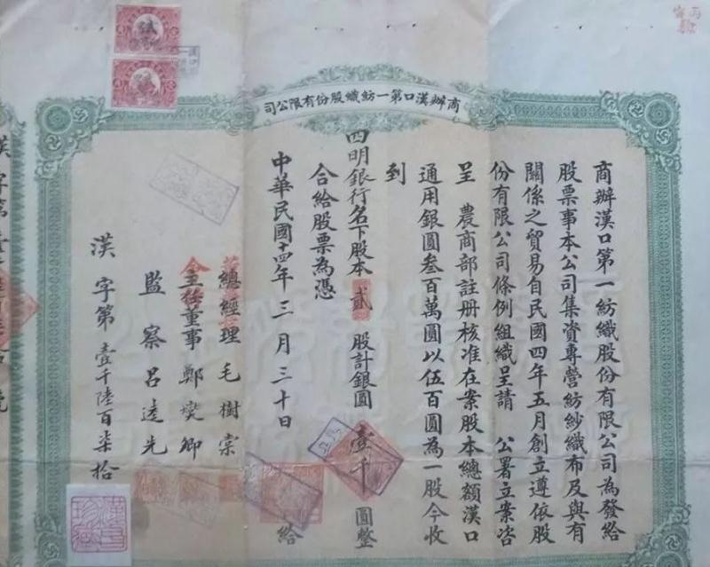 (1925年第一纱厂的股票——图片源自网络)