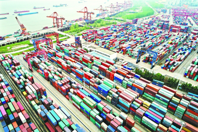 3月26日,阳逻港今年首艘近洋直航外籍船舶停泊武汉国际集装箱公司码头,在装满货物后直航日本名古屋。图为阳逻港核心区内集装箱整齐摆放记者任勇 摄