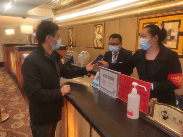 雷文洁一行先后到五星级饭店武汉富力威斯汀酒店和五月花大酒店、四星级饭店联投新大地酒店、三星级饭店丽江饭店,检查测温、扫码(行程码和健康码)、消杀等疫情防控措施,听取饭店负责人关于疫情防控工作汇报,随机抽查了饭店工作人员疫苗接种和核酸检测情况。