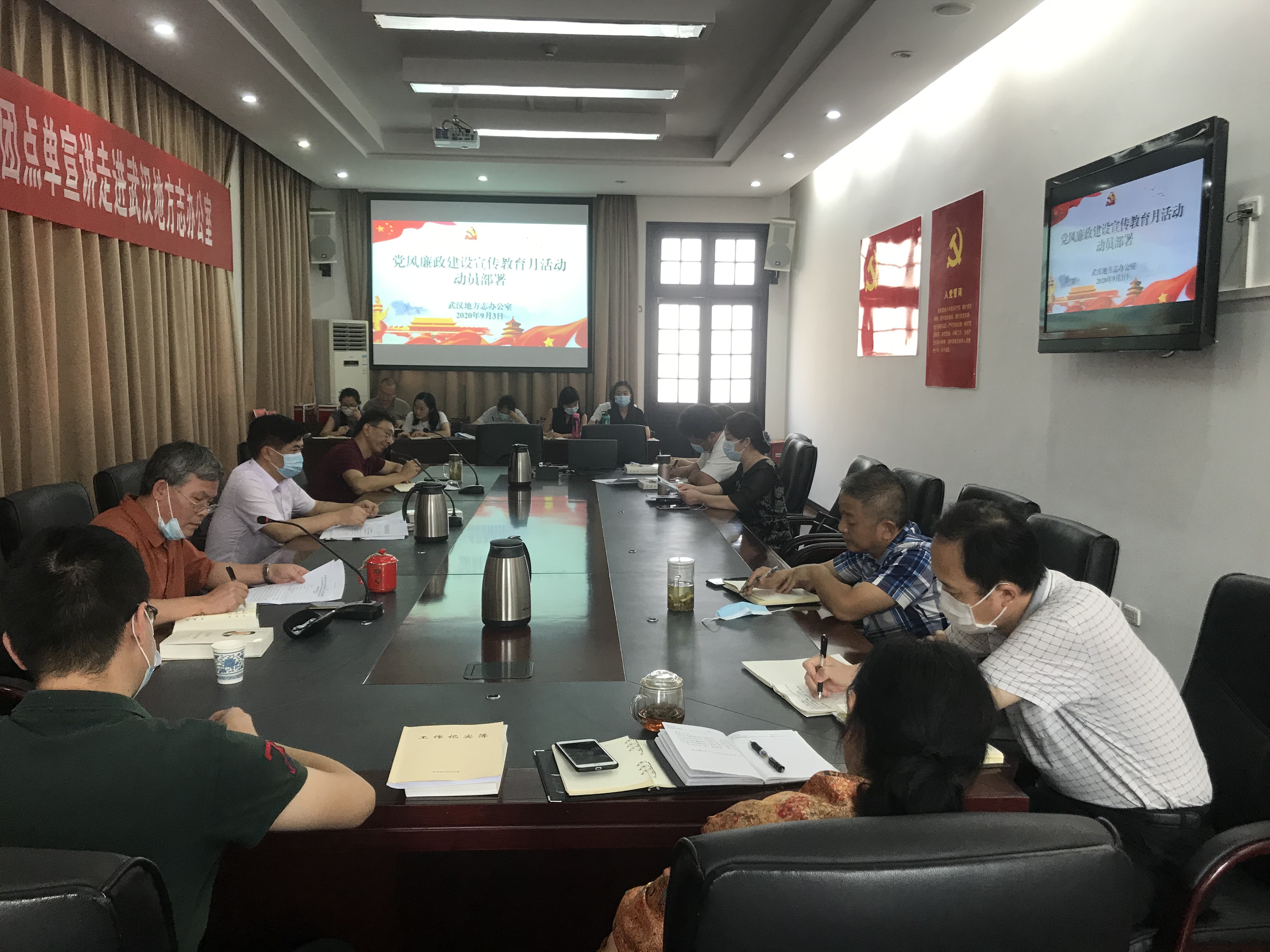 202093日下午武汉地方志办公室在四楼学术报告厅组织召开2020年党风廉政建设宣传教育月活动动员部署会,会议由党组成员、副主任程鹏主持,全体干部职工参加。