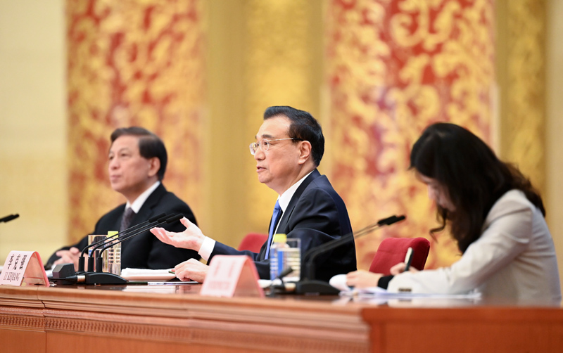 3月11日下午,十三届全国人大四次会议在北京人民大会堂举行记者会,国务院总理李克强应大会发言人张业遂的邀请出席记者会,并回答中外记者提问。新华社记者 翟健岚 摄