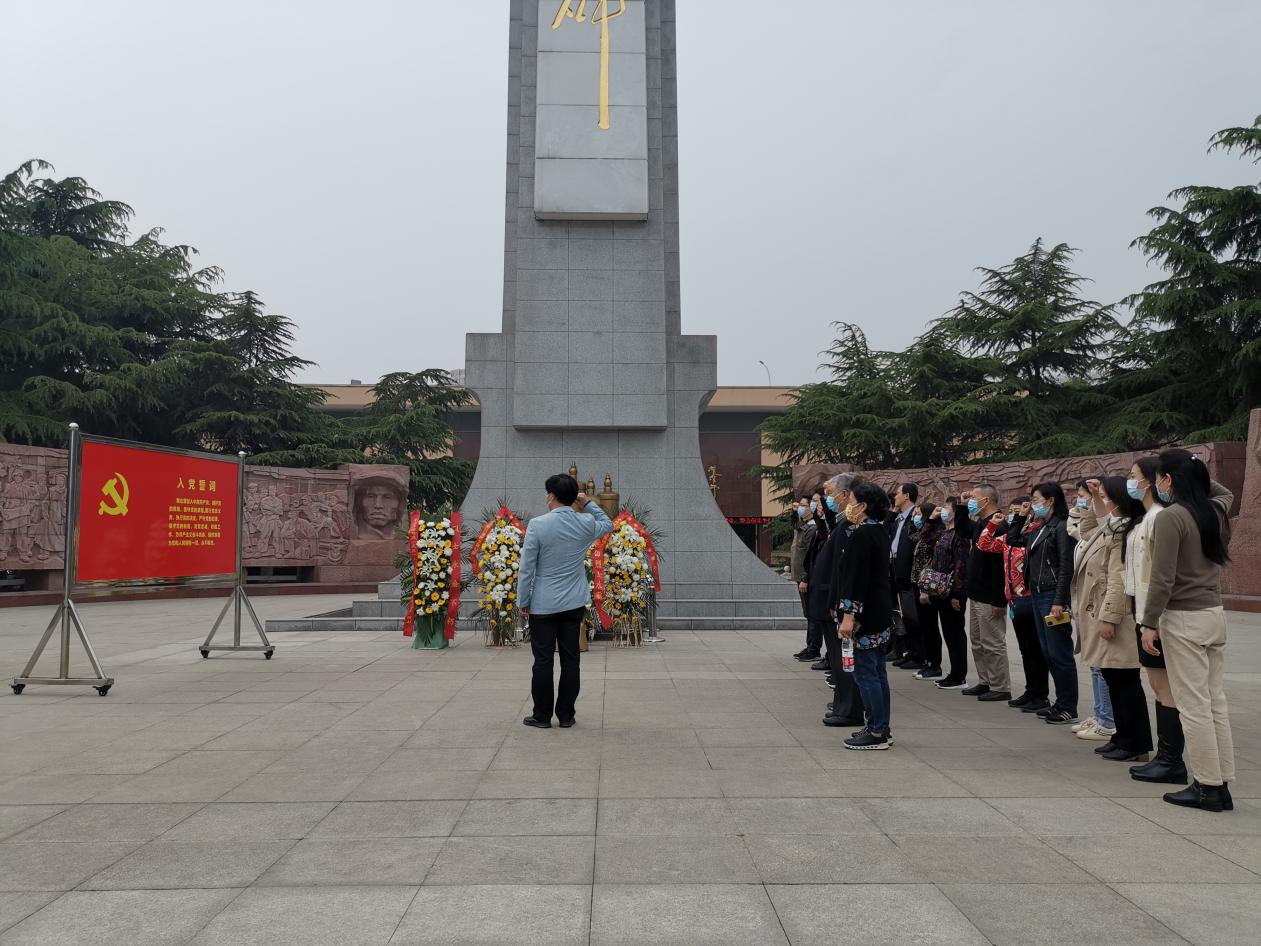 在毛泽东亲笔题写的二七烈士纪念碑前,武汉地方志办公室举行革命烈士悼念仪式,向纪念碑敬献花篮,全体人员整齐列队面向烈士纪念碑,向为共和国英勇献身的革命烈士三鞠躬。在庄严肃穆的纪念碑前,武汉地方志办公室党组书记、主任王筱武领誓,全体党员同志纷纷举起右手,庄严宣誓,重温入党誓词:“我志愿加入中国共产党,拥护党的纲领,遵守党的章程……随时准备为党和人民牺牲一切,永不叛党。”大家以坚定有力的宣誓声,表达不忘初心、砥砺奋进的决心。