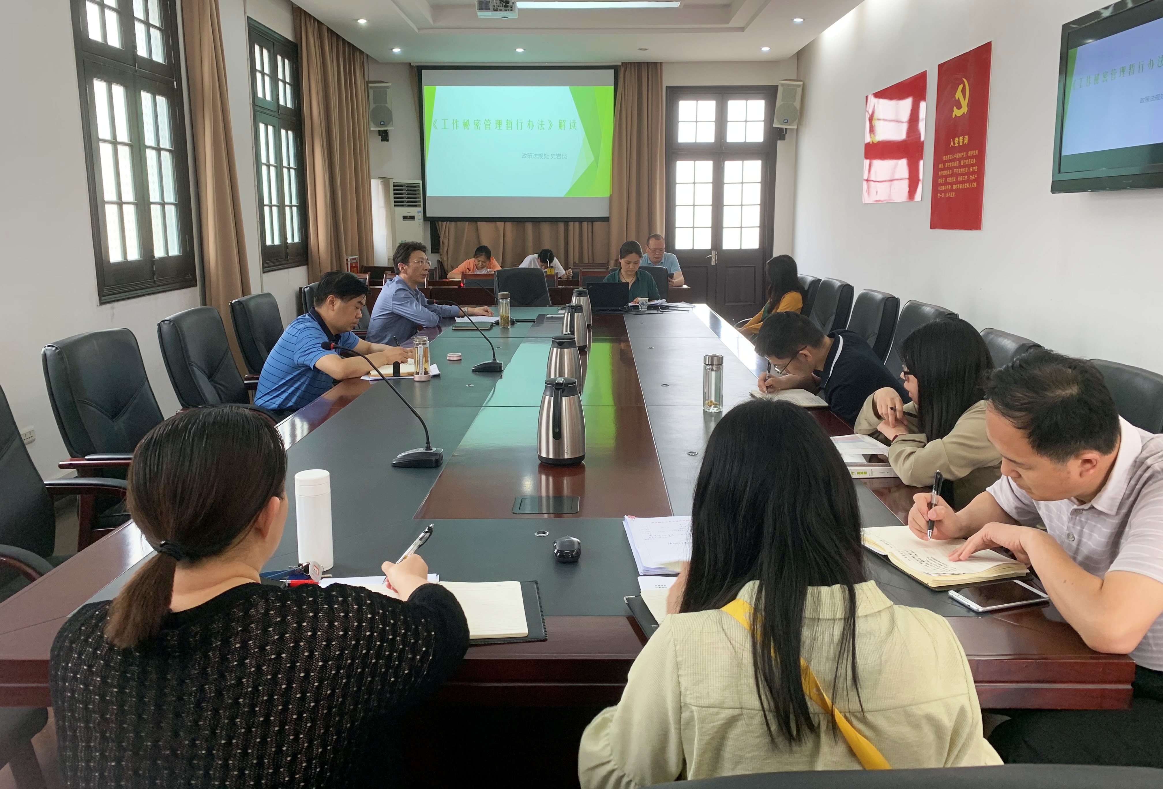 为深入贯彻落实习近平总书记关于加强保密工作的重要指示精神和省委、市委工作要求,切实加强保密工作管理,提升机关工作人员保密意识和保密能力,5月25日下午,我办邀请市委机要保密和档案局政策法规处四级调研员史岩昆开展了保密工作专题培训,由志办党组成员、副主任王勇祥主持,机关全体干部职工参加。
