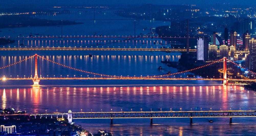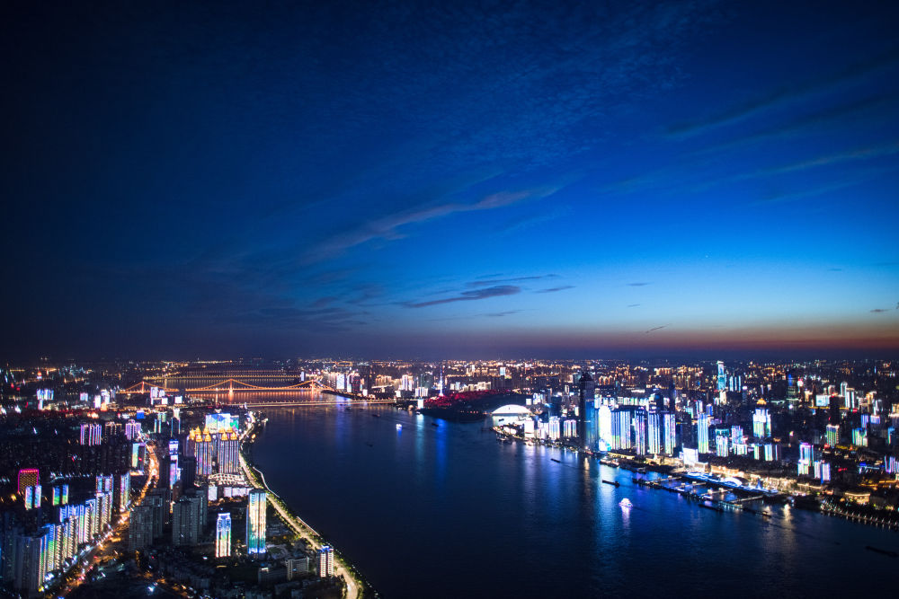 ↑2020年8月14日拍摄的武汉江景夜色。新华社记者 肖艺九 摄
