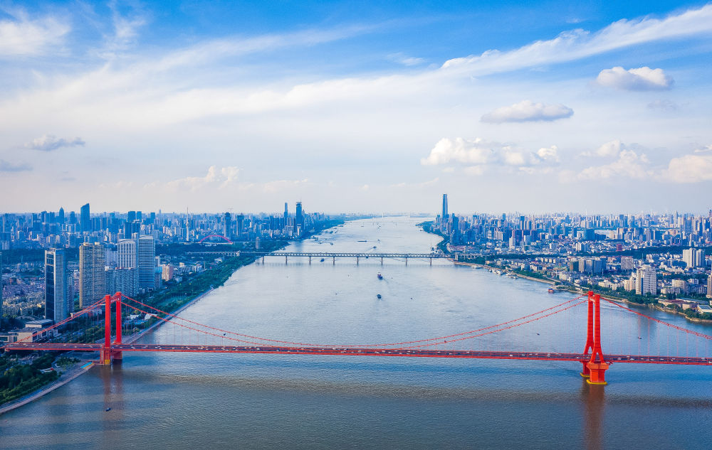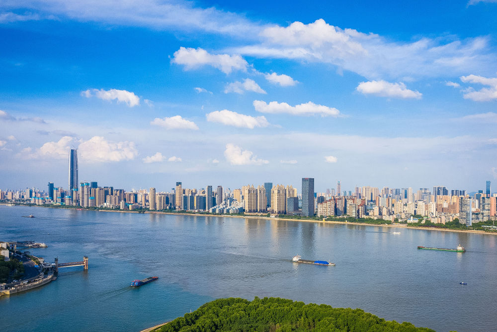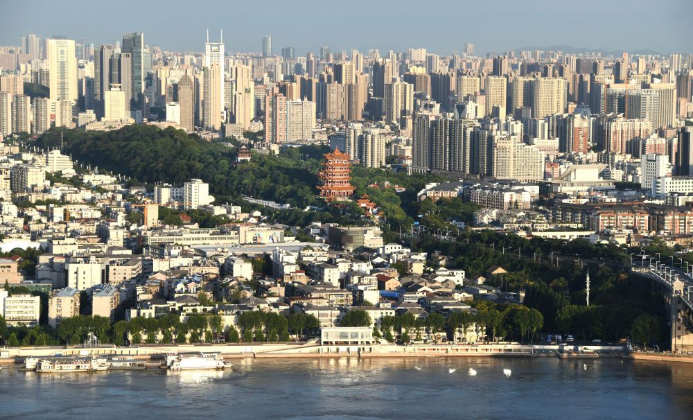 ↑6月23日拍摄的武汉江景(无人机照片)。新华社记者 肖艺九 摄