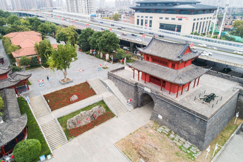 ↑这是10月9日拍摄的位于武汉市武昌区的起义门(无人机照片)。新华社发(伍志尊摄)