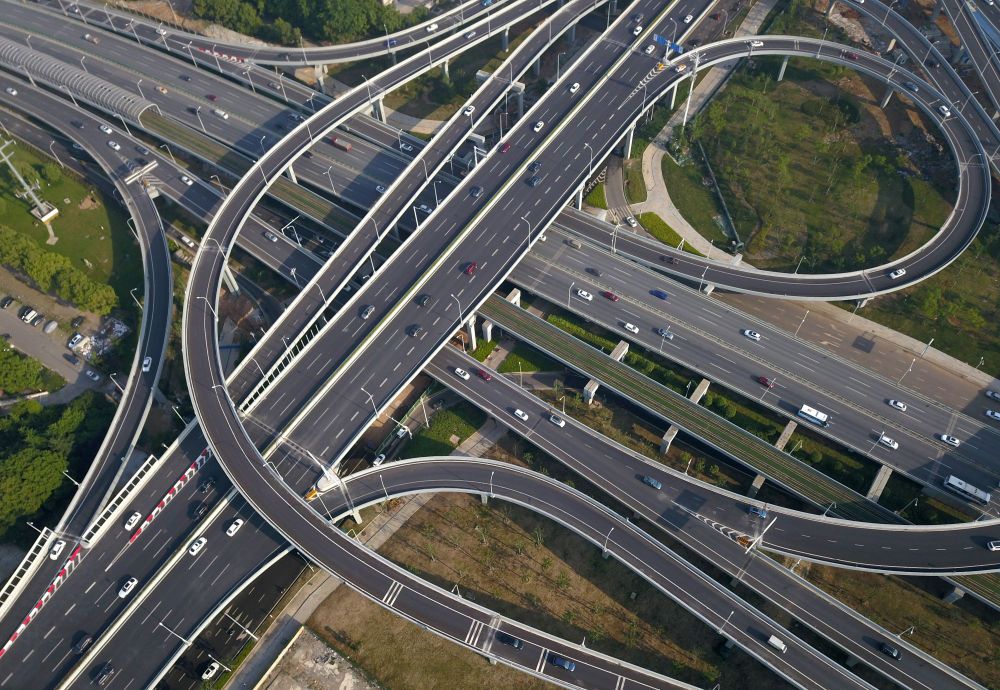 ↑2020年4月29日拍摄的武汉光谷大道立交桥(无人机照片)。新华社记者 程敏 摄