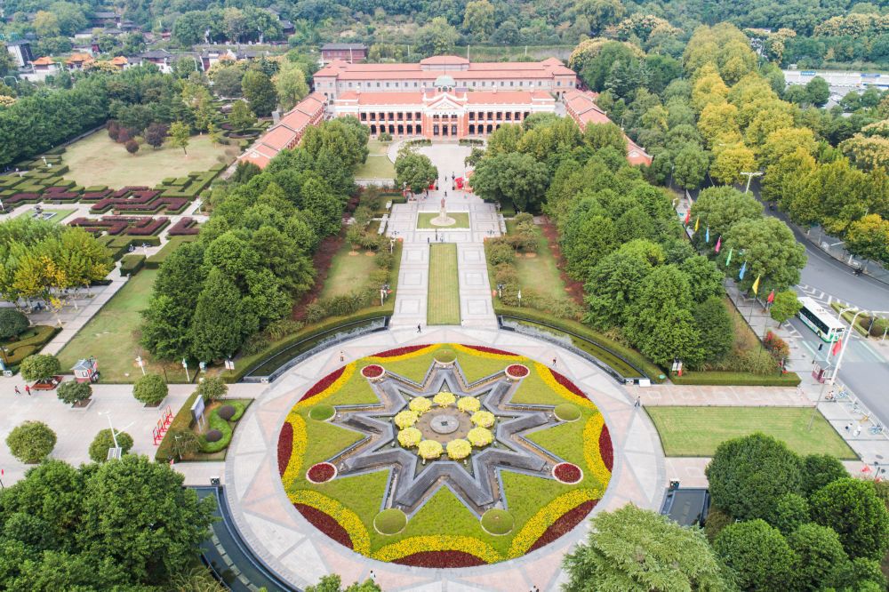 ↑9月29日拍摄的位于武汉市武昌区的辛亥革命武昌起义纪念馆(无人机照片)。新华社记者 程敏 摄