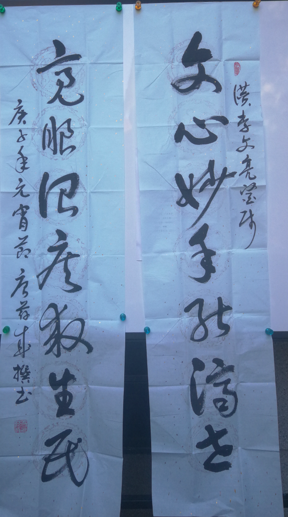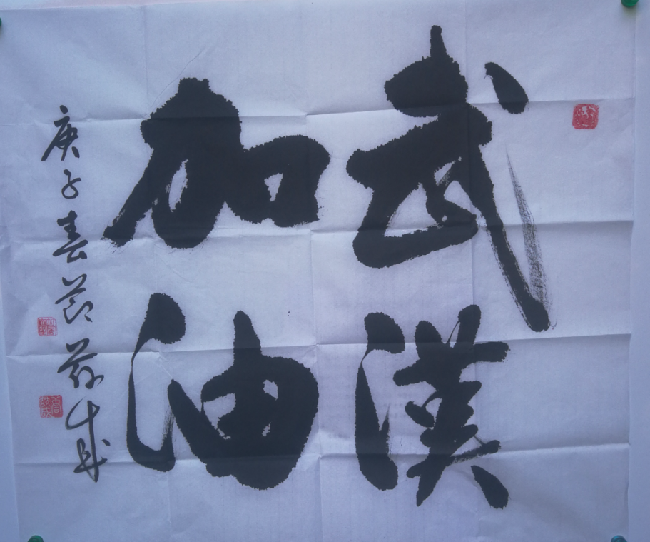 2020年9月4日,惠来县书画院院长唐兹成向武汉地方志办公室捐赠自己书法作品“文心妙手能济世,亮眼治疾救生民”“武汉加油”。