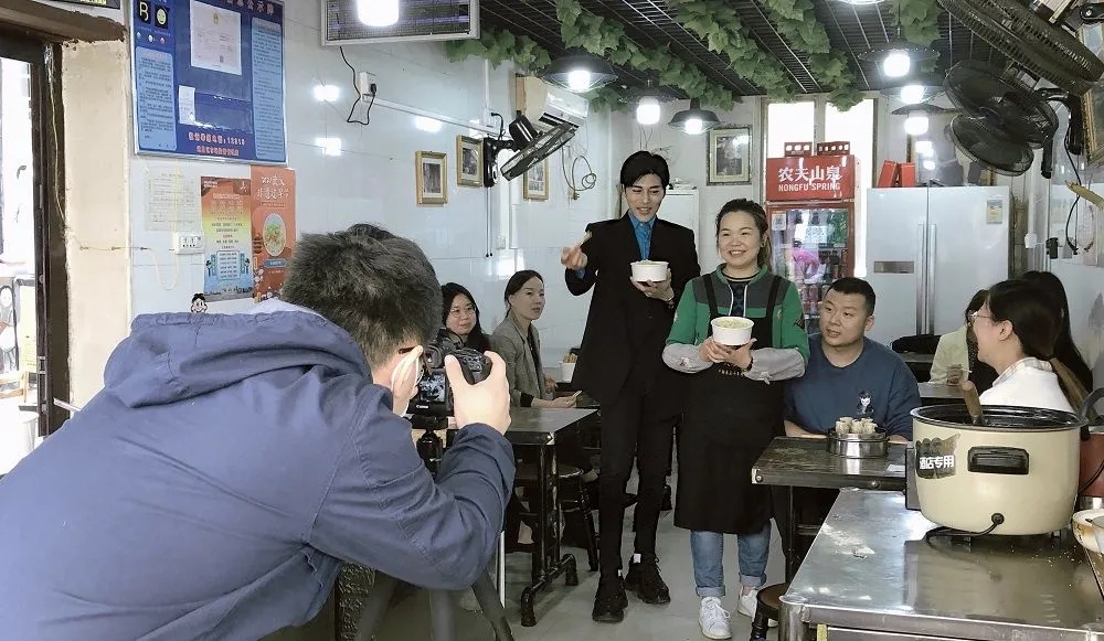 中央广播电视总台欧洲拉美地区语言节目中心意大利语部直播武汉热干面。通讯员供图