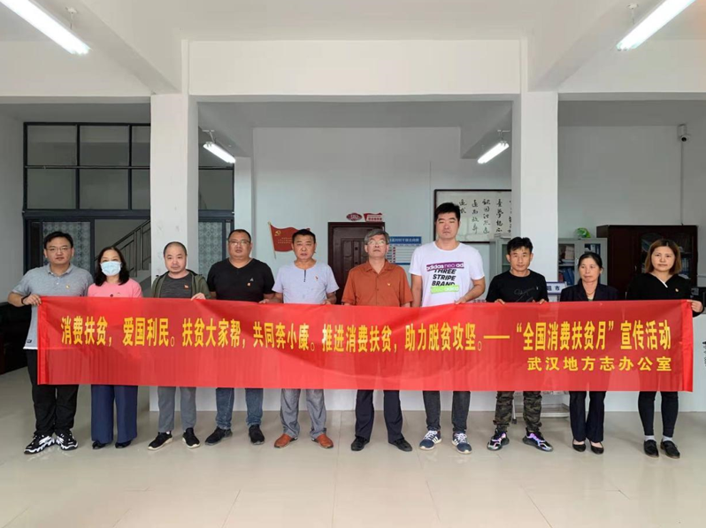 2020年9月17日上午,武汉地方志办公室党组成员、副主任程鹏和机关党委专职副书记黄红萍,来到对口帮扶的江夏区舒安街嗣孟村,开展“决胜全面小康,决战脱贫攻坚”暨“全国消费扶贫月”主题宣传教育活动。