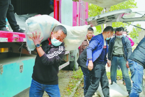 硚口区教育局驻罗汉寺街北新村第一书记叶北川在抗疫一线搬运春耕生产物资