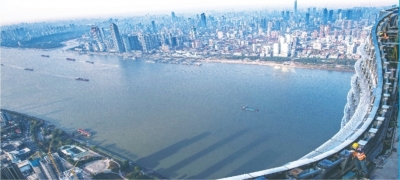 从武昌向汉口、汉阳俯瞰,两江交汇、三镇鼎立,长江主轴美不胜收。新华社记者肖艺九 摄