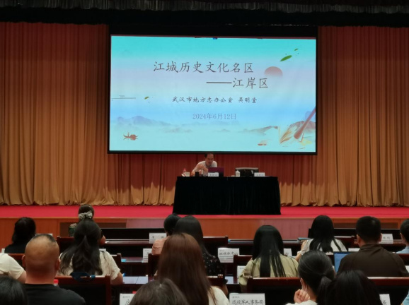 6月12日上午,在第17个国际档案日活动期间,市地方志办组织开展方志文化宣讲活动。市地方志办党组成员、副主任、市地名委员会专家组专家吴明堂在三峡集团会议中心报告厅,以《历史文化名区:江岸区》为题为江岸市民和史志工作者作专题授课。江岸区各部门、各单位档案工作者和三峡集团公司总部各部门、直属机构、在汉所属单位专(兼)职档案工作人员以及集团各地视频分会场共计370余人观看了讲座。