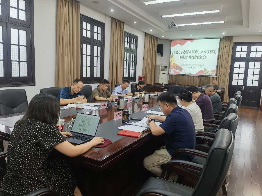 9月12日,市地方志办召开党组(扩大)会暨深入贯彻中央八项规定精神学习教育总结会议,传达学习习近平总书记关于深入贯彻中央八项规定精神学习教育的重要讲话和重要指示批示精神,认真落实中央和省市党的建设工作领导小组会议部署要求,对全办深入贯彻中央八项规定精神学习教育进行总结,研究部署巩固拓展学习教育成果工作。市地方志办党组书记、主任王筱武主持会议并讲话。