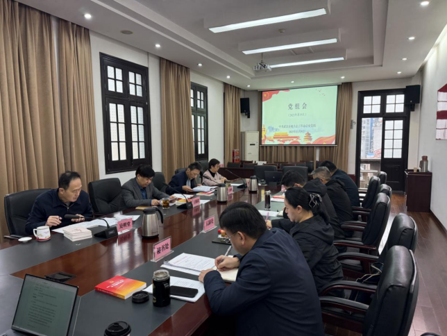 2025年11月9日上午,武汉市地方志工作办公室召开党组(扩大)会议,传达学习贯彻党的二十届四中全会精神,安排部署全办学习宣传贯彻工作。党组书记、主任王筱武主持会议并讲话,党组成员、派驻市政府机关纪检监察组黄晓副组长参加会议,各处室负责人列席会议。