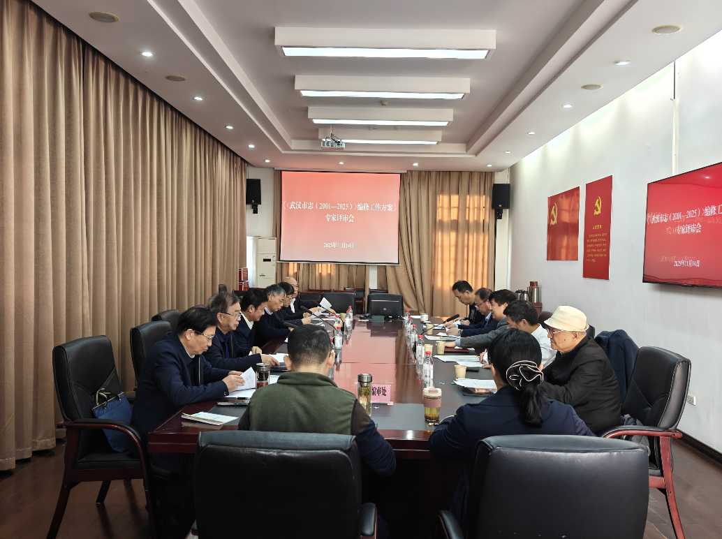 11月14日,武汉市地方志工作办公室召开《〈武汉市志(2001—2025)〉编修工作方案》专家评审会。湖北省社科联主席、华中师范大学原党委书记赵凌云,湖北省文旅厅原二级巡视员、原湖北省地方志办公室副主任司念堂,武汉市纪委原副书记王守宪,武汉市委原副秘书长袁希民、张河山,武汉市政府原副秘书长、一级巡视员席丹,武汉大学历史学院院长、教授杨国安,江汉大学副校长、教授李卫东,武汉市地方志办原副巡视员王汗吾等应邀出席评审。武汉市地方志工作办公室党组书记、主任王筱武主持会议,党组成员、副主任吴明堂参加会议。