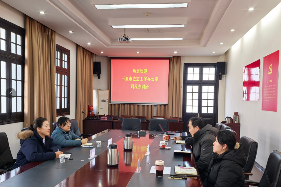 2026年1月6日,三亚市史志工作办公室主任杨扬率队到我办,就第三轮志书编纂组织机制、实践操作及方志馆建设等工作开展调研交流。武汉市地方志工作办公室党组成员、副主任吴明堂及方志编审处工作人员参加座谈。