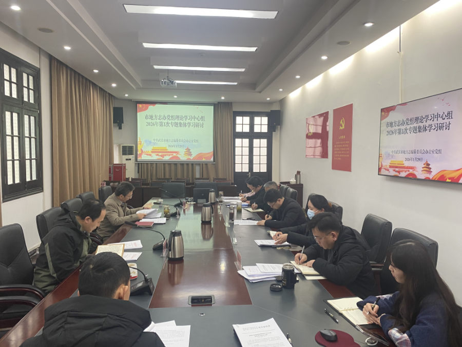 1月30日,市地方志办党组理论学习中心组举行2026年第1次专题研学,深入学习贯彻党的二十届四中全会精神,习近平总书记关于党的建设的重要思想、关于党的自我革命的重要思想以及关于加强党的纪律建设、作风建设重要论述,习近平总书记考察湖北重要讲话精神,为扎实开好2025年度民主生活会打牢思想基础,党组班子成员围绕学习重点,结合工作实际和个人学习体会开展研讨交流。单位负责人、党组成员、副主任王勇祥主持会议。副处级以上干部列席会议。