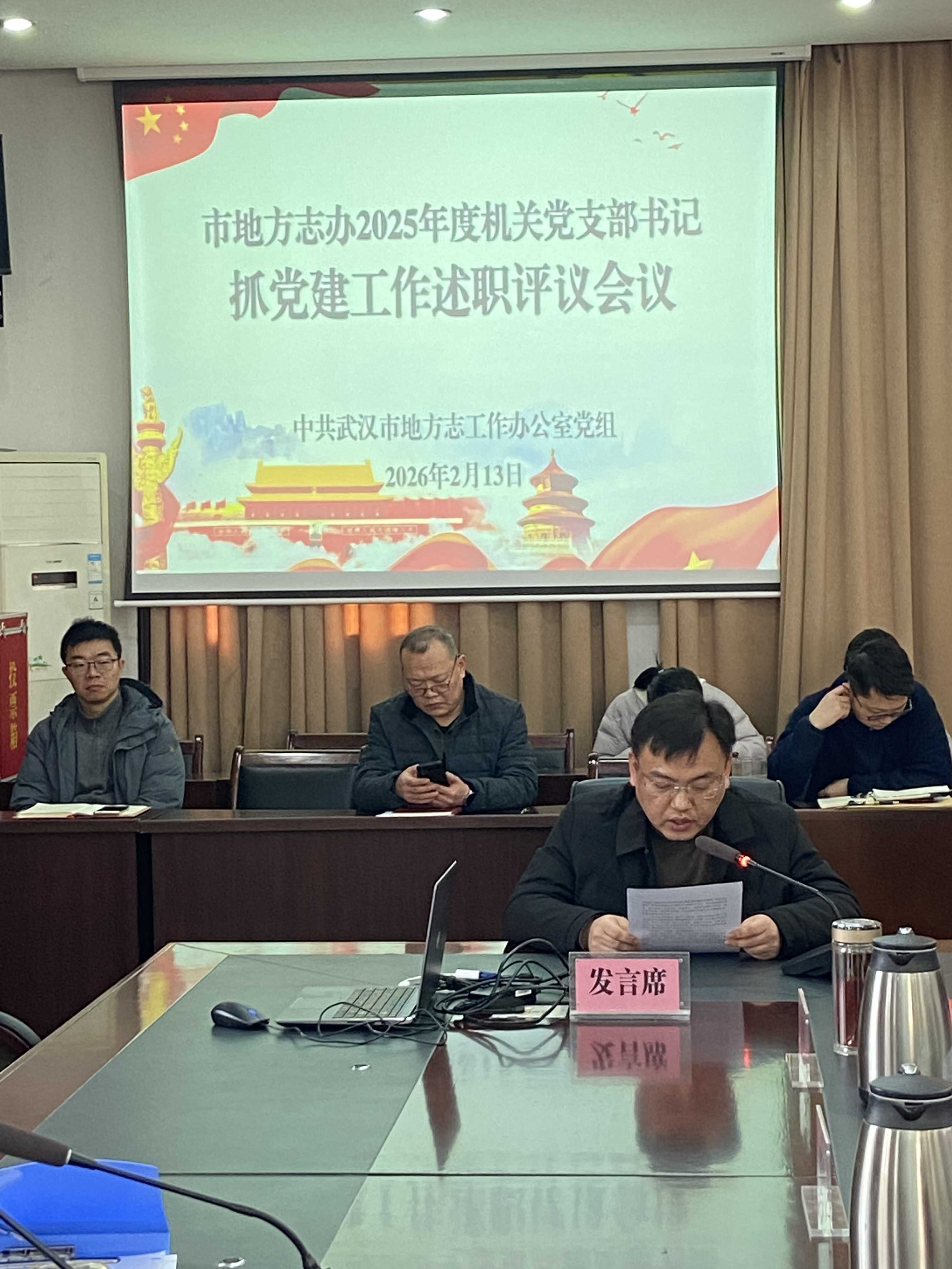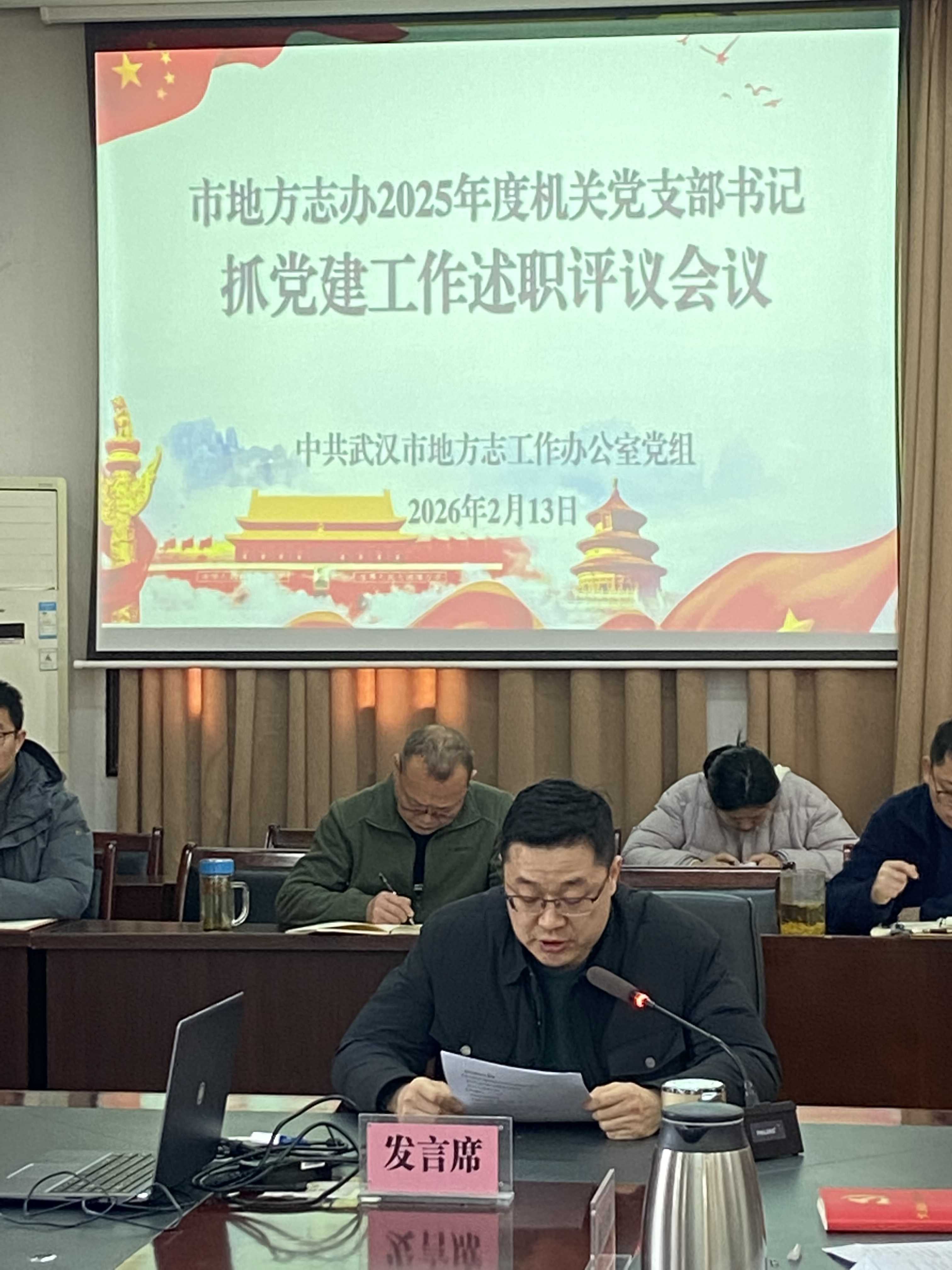 2月13日,市地方志办召开2025年度机关党支部书记抓基层党建工作述职评议大会,党组成员、副主任王勇祥主持会议,全体党员干部参加。