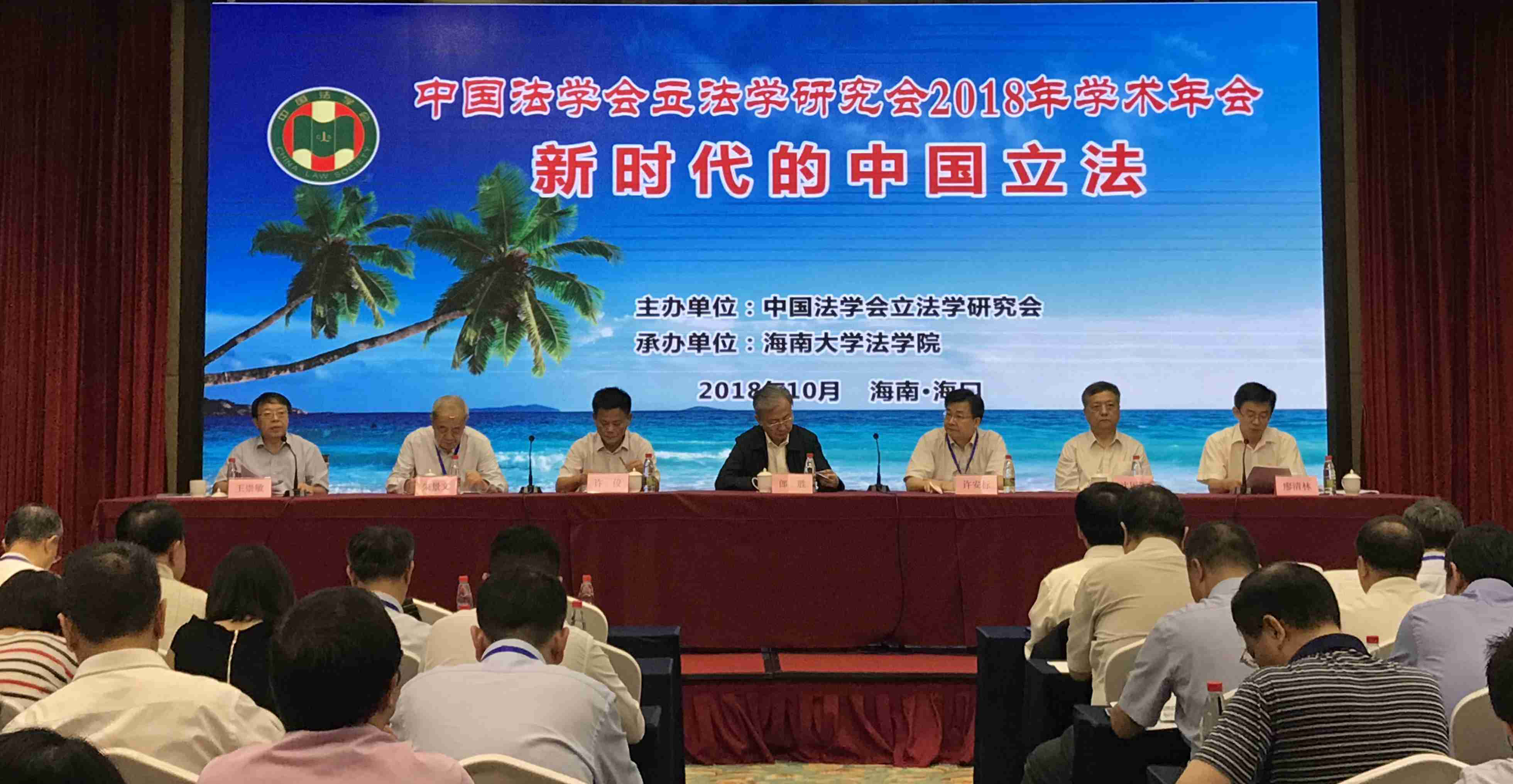 2018年10月27—28日,为期两天的中国法学会立法学研究会2018年学术年会在海南省海口市召开。中国法学会副会长郎胜出席会议并致辞,全国人大常委会法制工作委员会副主任许安标出席会议并作了题为《在全面依法治国的伟大实践中深化立法理论研究》的专题报告,中国法学会立法学研究会副会长、中国人民大学教授朱景文出席会议并作了研究会年度工作报告。来自全国各级立法机关、各大高校和科研机构的立法学专家、立法实务工作者共300余人参会。本届年会以“新时代的中国立法”为主题,集中研讨了习近平重要思想对立法理论与实践的指导、改革开放四十年以来的立法经验、立法体制理论与实践的创新与完善、“一带一路”建设与国家立法的发展与完善等议题,为进一步推动立法理论和实务工作的创新积极建言献策。
