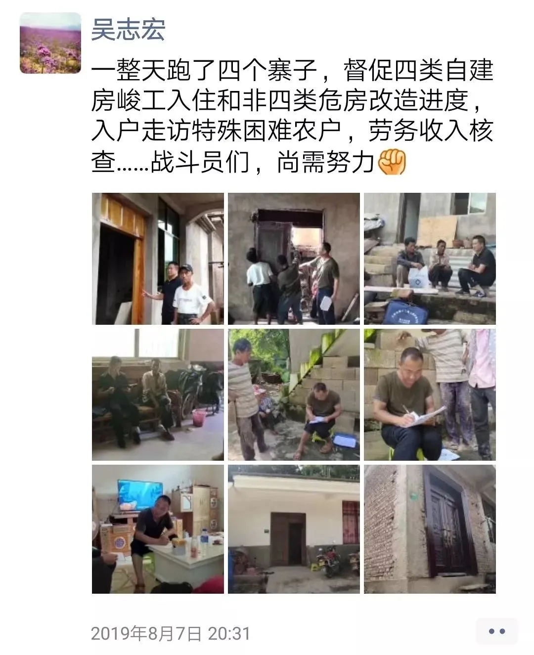 2018年3月,吴志宏被派驻红河县三村乡任扶贫工作队队长,除了负责落实全乡的脱贫攻坚任务外,还承担着补干村委会的脱贫攻坚任务。他遍访贫困户,摸清贫困对象家底、贫困状况、致贫原因;他勤于调查研究,制定产业发展计划,探索推进“企业+合作社+贫困户”的产业发展模式,有效解决了部分贫困户增收难的问题。