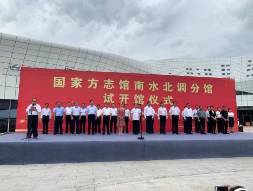 2021年7月1日上午,国家方志馆南水北调分馆试开馆仪式在河南省焦作市举行。中国地方志指导小组办公室党组书记、方志出版社社长高京斋,河南省地方史志办公室主任管仁富,河南省水利厅党组副书记、副厅长王国栋莅焦祝贺。市委书记王小平,市领导杨娅辉、路红卫等出席试开馆仪式。 王小平、高京斋共同为国家方志馆南水北调分馆揭牌。