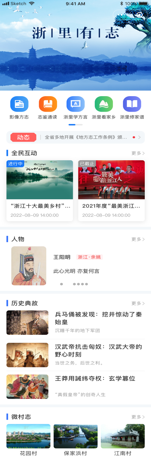 “浙里有志”重大应用以建立健全地方史志文化传承发展利用机制为改革目标,着力破解地方史志文化成果使用范围不广、利用程度不高,群众参与感不强,事业发展评价体系不完善等问题,坚持以“小场景”构建“大应用”。围绕“浙里有志”重大应用,先后谋划启动了“浙里学方言”“浙里修家谱”“浙里看家乡”“浙里编年鉴”“浙里修村志”等多个“小应用场景”,初步打造了一系列具有方志特色和辨识度的数字化改革成果,积累形成了浙江经验。