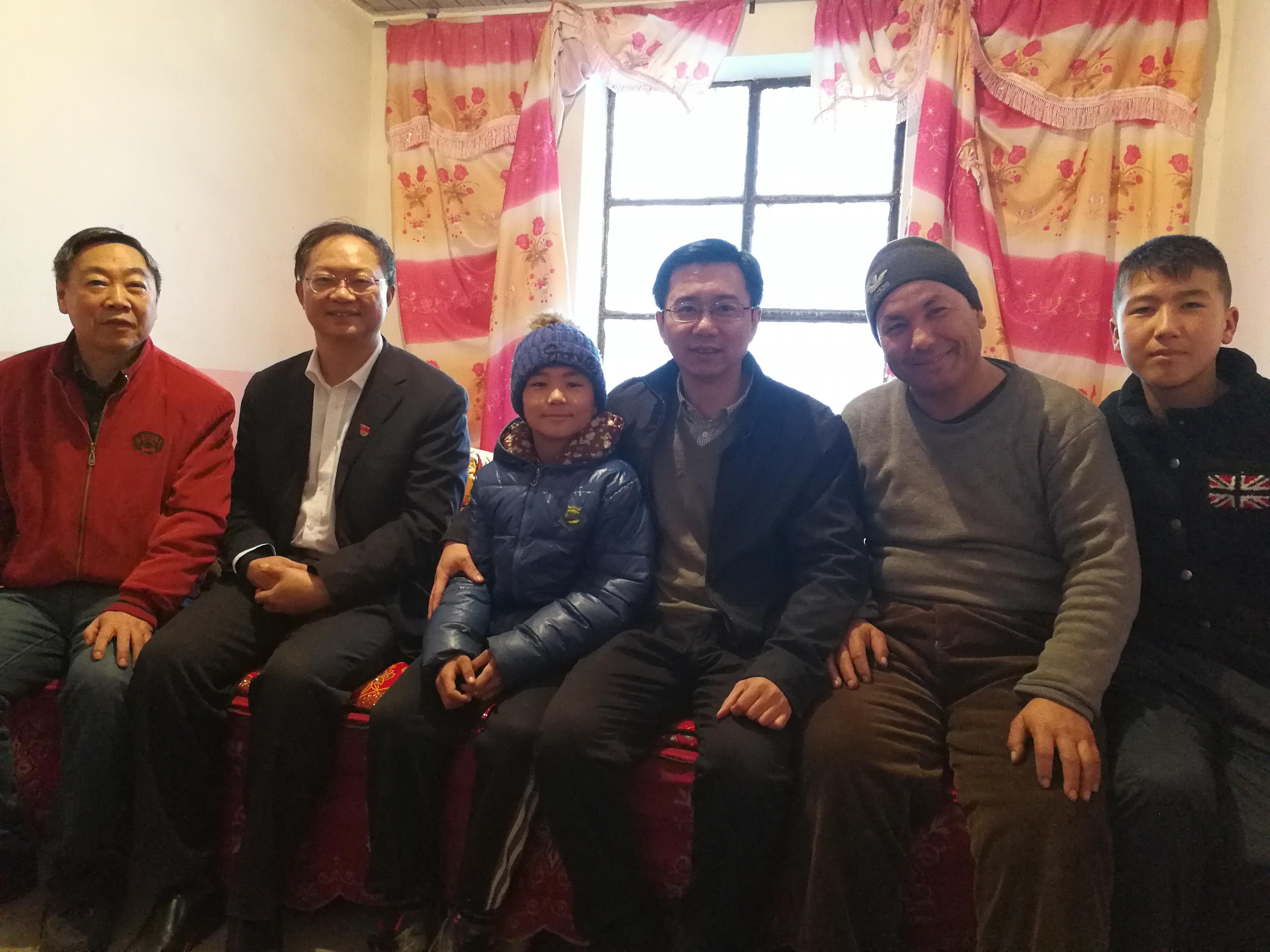 ▲2017年12月,陈旭(图中左四)走访兵团第三师图木舒克市49团十连职工家。新疆生产建设兵团党委党史研究室(兵团志办公室)/供图