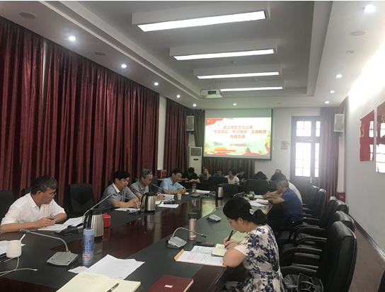 根据“不忘初心、牢记使命”主题教育的统一部署安排,2019年8月9日下午,武汉地方志办公室党组书记、主任王筱武结合前期学习、调研、检视、整改情况和地方志工作实际,以《深学细悟,细照笃行,把检视问题、整改落实贯穿主题教育全过程》为主题讲授专题党课。市委“不忘初心、牢记使命”主题教育巡回指导组第九组成员巩青林莅临指导,党组成员、副主任王勇祥主持活动,志办全体党员干部职工参加。