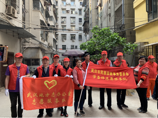 为迎接军运会的到来,大力开展“周末清洁家园”行动,2019年4月18日上午,武汉地方志办公室志愿服务队队员参加江岸区大智街泰宁社区志愿服务活动。