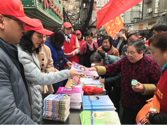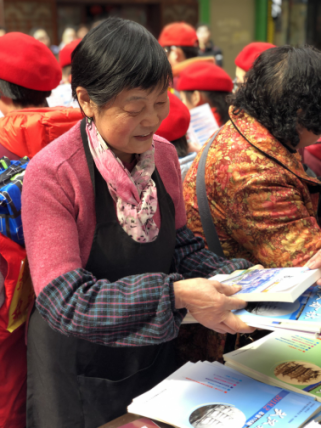 武汉志办志愿者向群众发放《武汉春秋》《武汉市情概览》等书刊