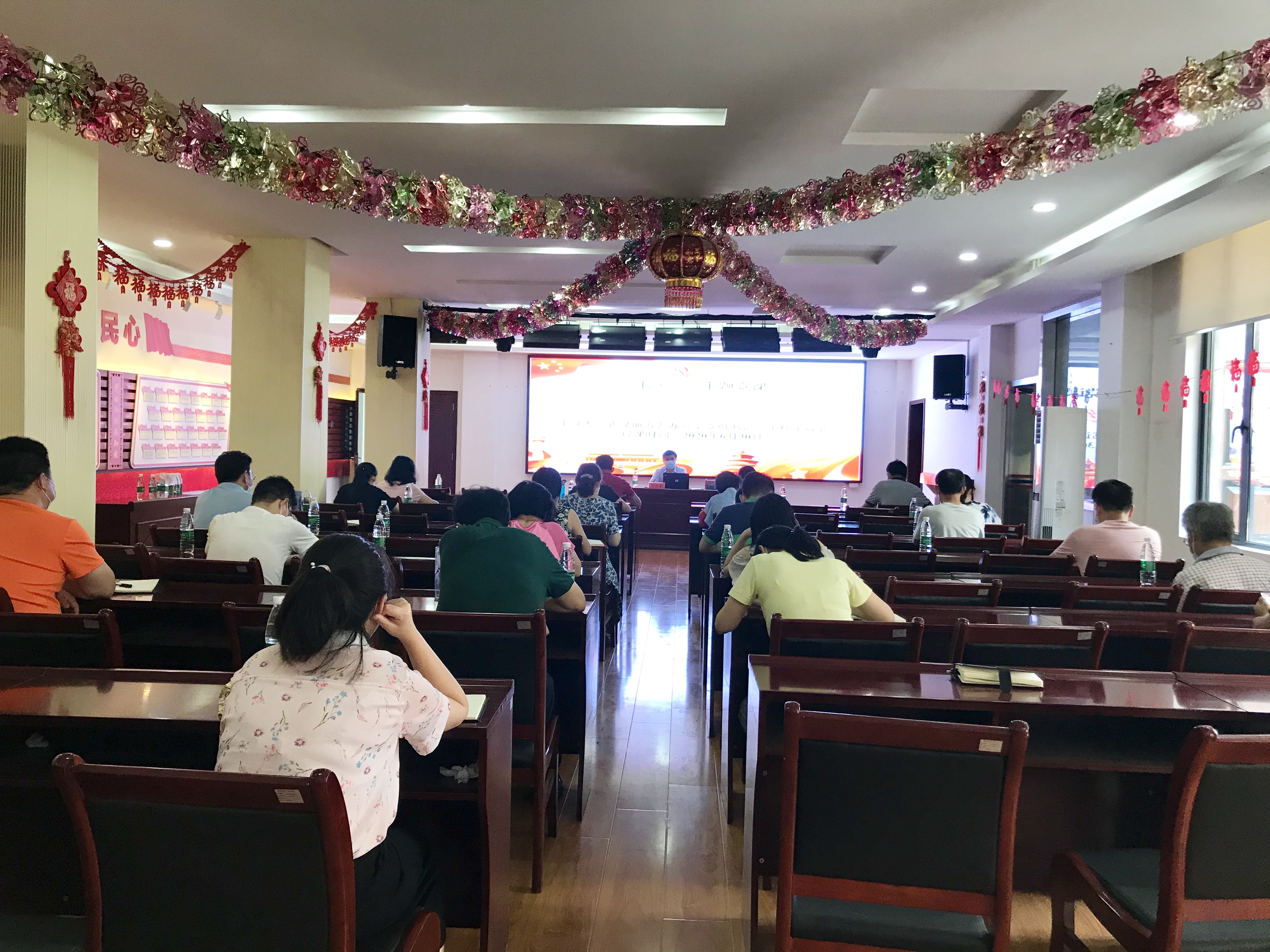 为庆祝中国共产党成立99周年,持续开展“不忘初心、牢记使命”主题教育,2020年6月30日下午,武汉地方志办公室在大智街保成社区党员群众服务中心三楼报告厅开展“七一”主题党课活动。志办党组书记、主任王筱武以“牢记初心使命 对党绝对忠诚”为主题讲授专题党课,志办全体干部职工、大智街保成社区第三网格党支部党员参加活动。志办党组成员、副主任,机关党委书记程鹏主持活动。