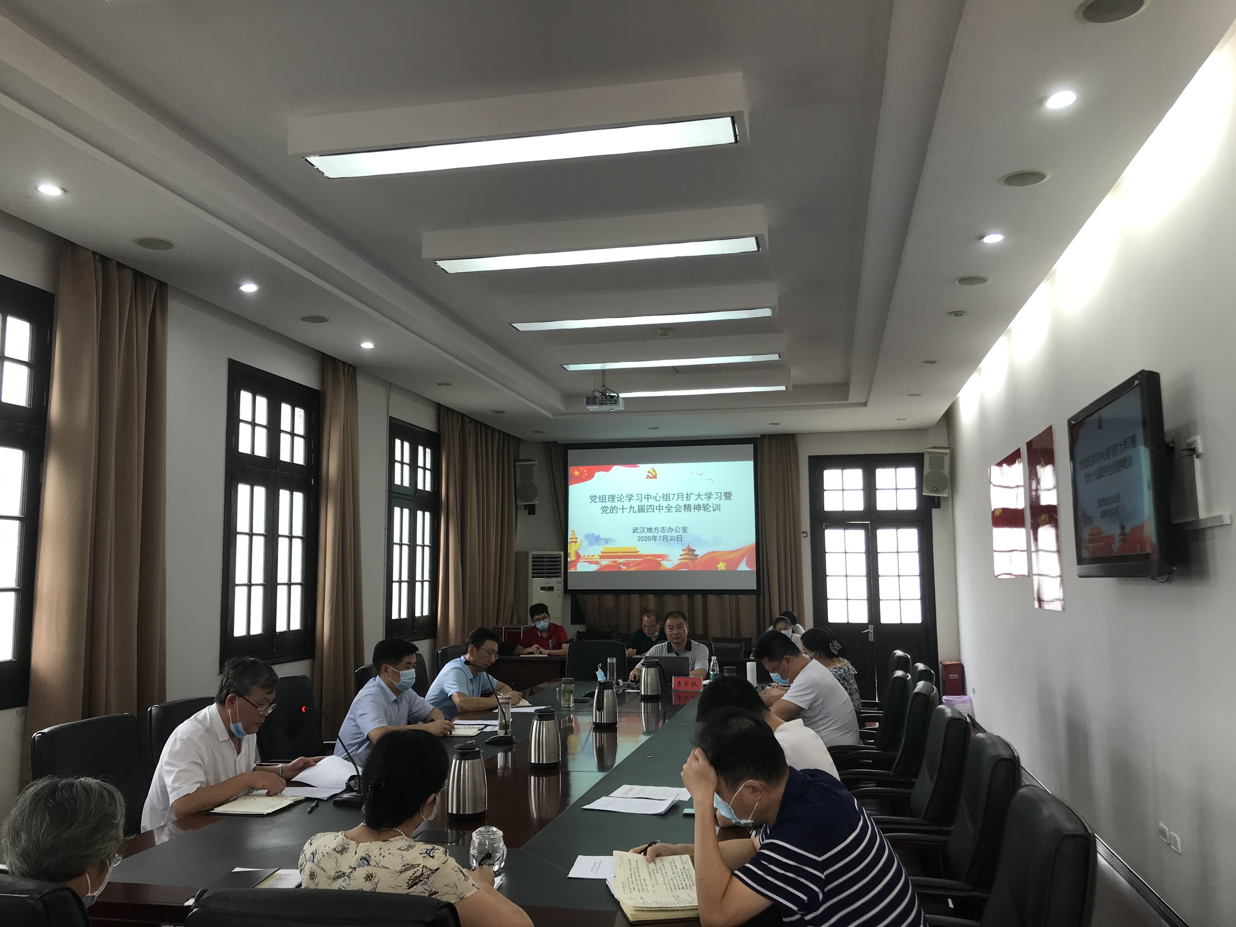 2020年7月30日下午,武汉地方志办公室组织开展2020年党组理论学习中心组7月扩大学习暨党的十九届四中全会精神轮训活动。党组成员、副主任程鹏主持活动,全体干部职工参加。