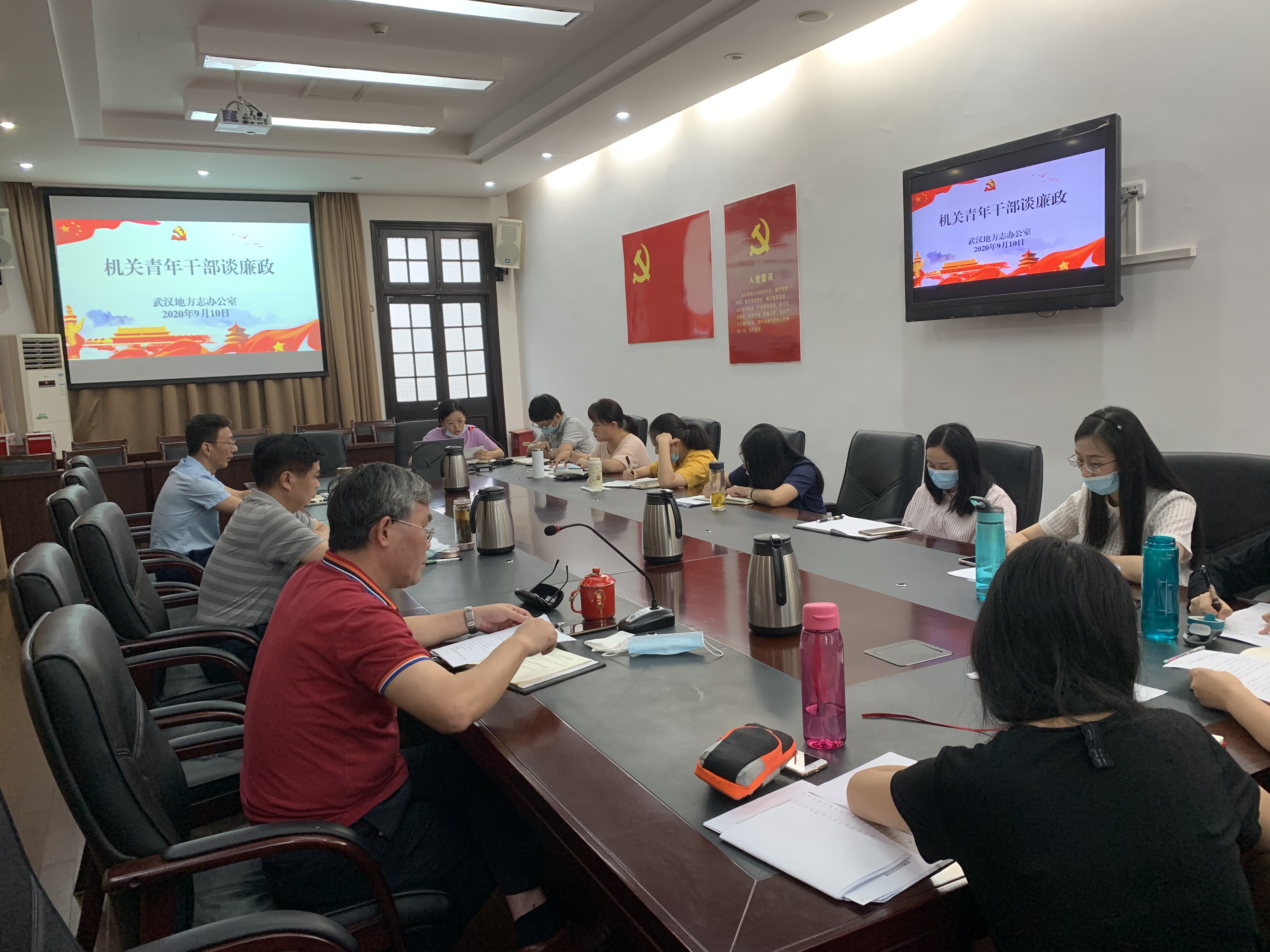 按照全市“宣教月”活动要求,2020年9月10日,武汉地方志办公室组织开展“机关青年干部谈廉政”活动,三位领导班子成员、青年读书会成员参加活动,机关党委宣传委员张昀主持。