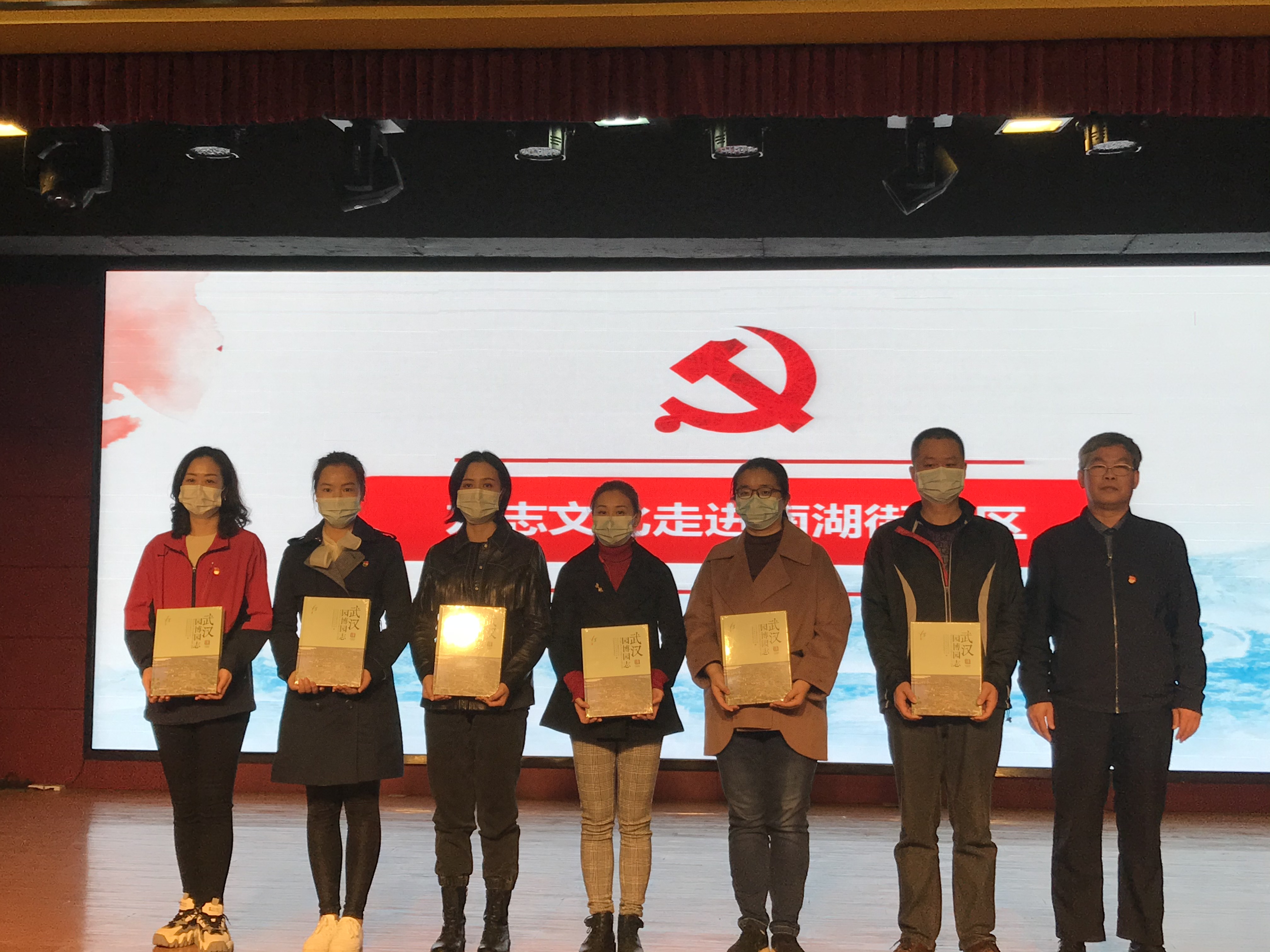 武汉志办党组成员、副主任暨机关党委书记程鹏向南湖街宁松社区、宝安社区、中央花园社区、华锦社区、都市桃社区、水域风华社区赠送志鉴书籍