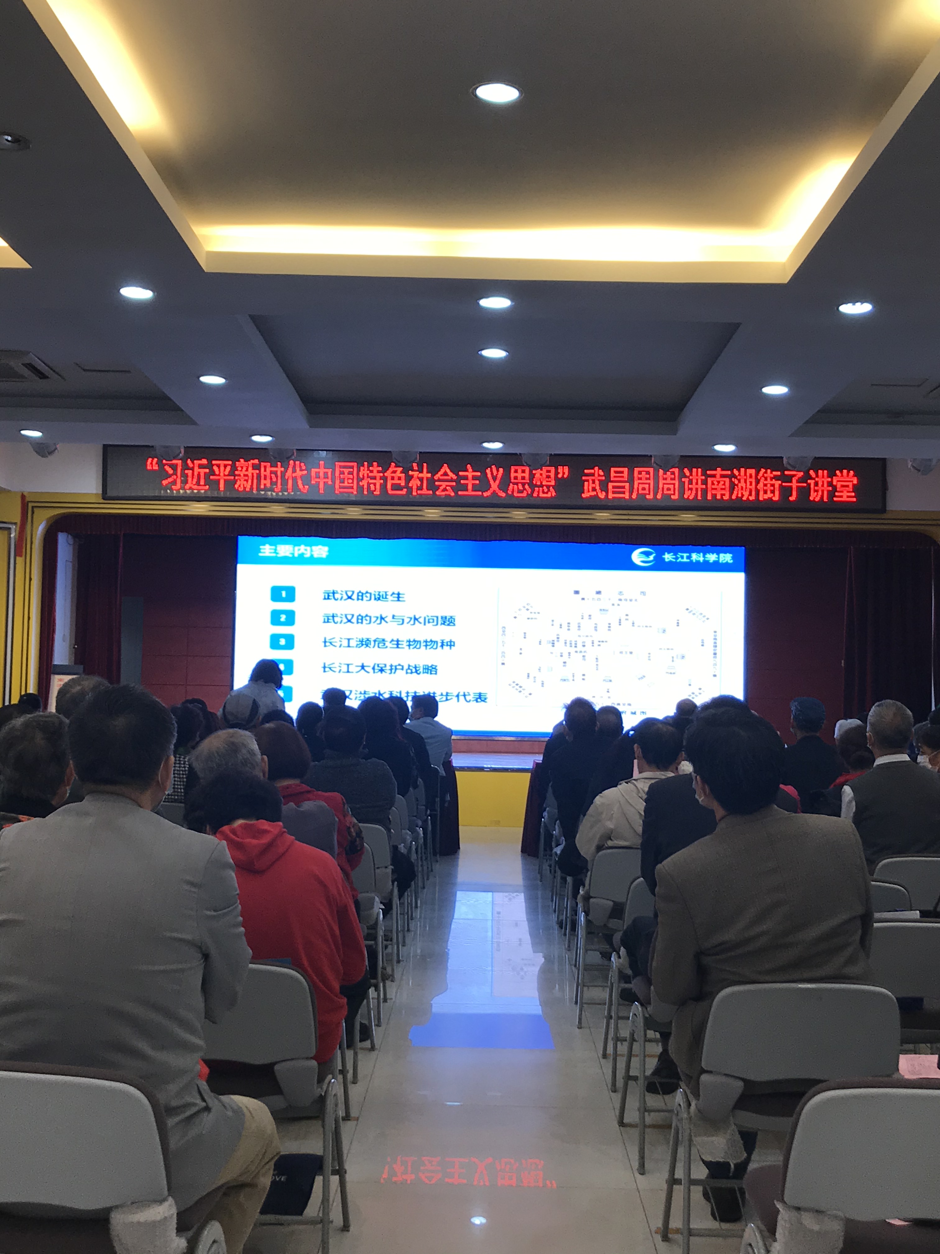 方志文化进社区”环节,武汉地方志办公室党组成员、副主任暨机关党委书记程鹏向南湖街宁松社区、宝安社区、中央花园社区、华锦社区、都市桃源社区、水域风华社区赠送志鉴书籍共计29222册。全体人员共同观看“方志讲堂·复兴大武汉”系列讲座视频第二期“武汉发展与长江大保护”,此讲座由长江水利委员会长江科学院教授级高工陈进讲授。