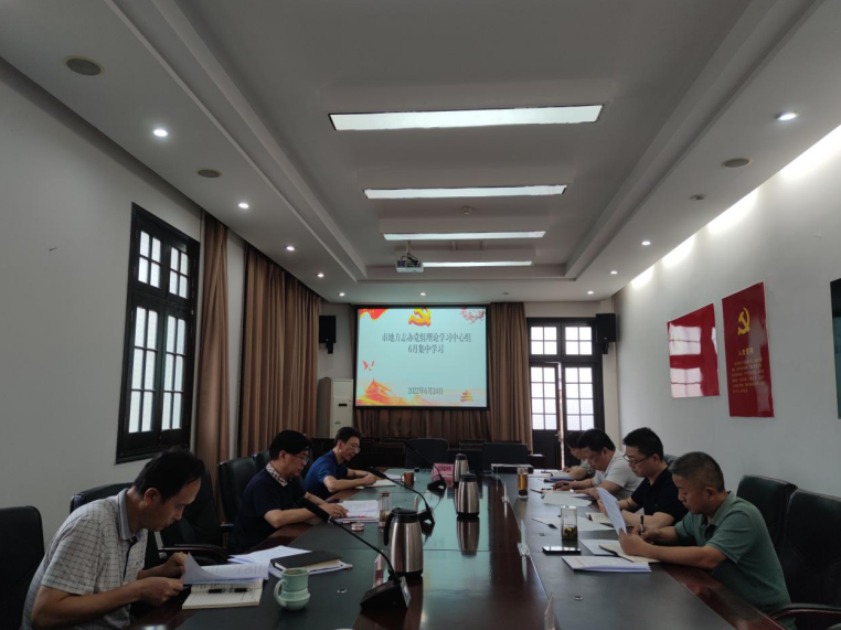 2022年6月24日下午,武汉市地方志编纂委员会办公室组织开展党组理论学习中心组6月集中学习活动。本次学习的主题为加快推进超大城市现代化治理,奋力打造新时代英雄城市。党组书记、主任王筱武主持学习,党组成员、处级以上干部参加。