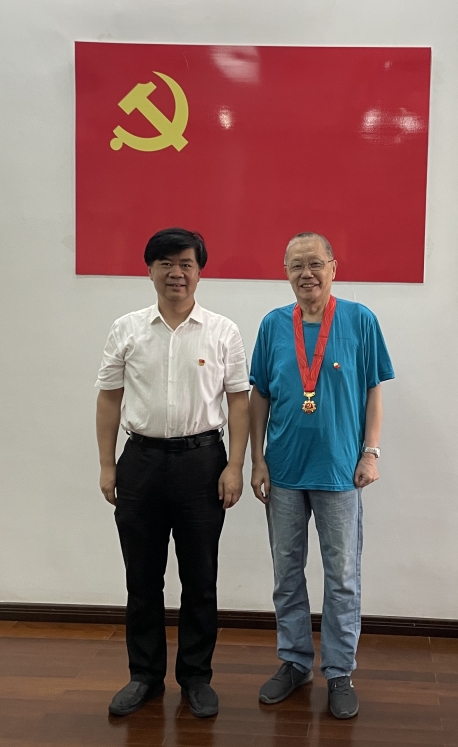 市地方志办党组书记、主任王筱武为党员唐东生颁发“光荣在党50年”纪念章