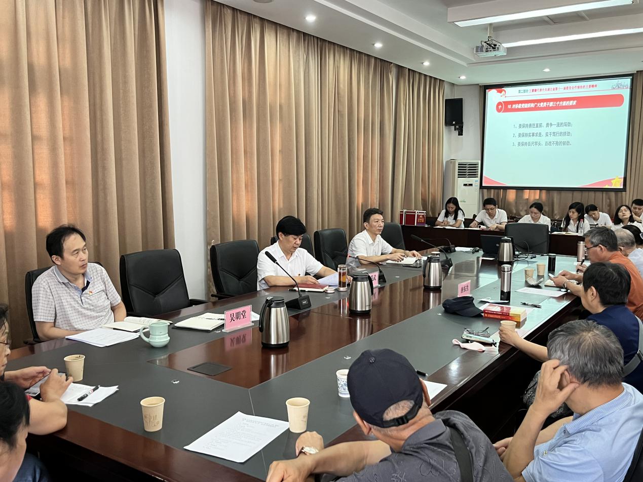 随后,市地方志办党组书记、主任王筱武系统传达学习了习近平总书记考察湖北武汉重要讲话精神,并以“深入学习贯彻省第十二次党代会精神,推动武汉地方志事业高质量发展”为题讲授专题党课。王筱武从中国共产党湖北省第十二次党代会概况,王蒙徽代表中共湖北省第十一届委员会作报告的主要精神,中共湖北省委十二届一次全会主要精神,王蒙徽参加武汉代表团审议时讲话的主要精神,以及深入贯彻省党代会精神,在建设全国构建新发展格局先行区中找准定位、履职尽责等五个方面对省第十二次党代会精神进行集中宣讲,并结合地方志工作的实际,就下一步贯彻落实省第十二次党代会精神,做好地方志工作提出了具体要求。