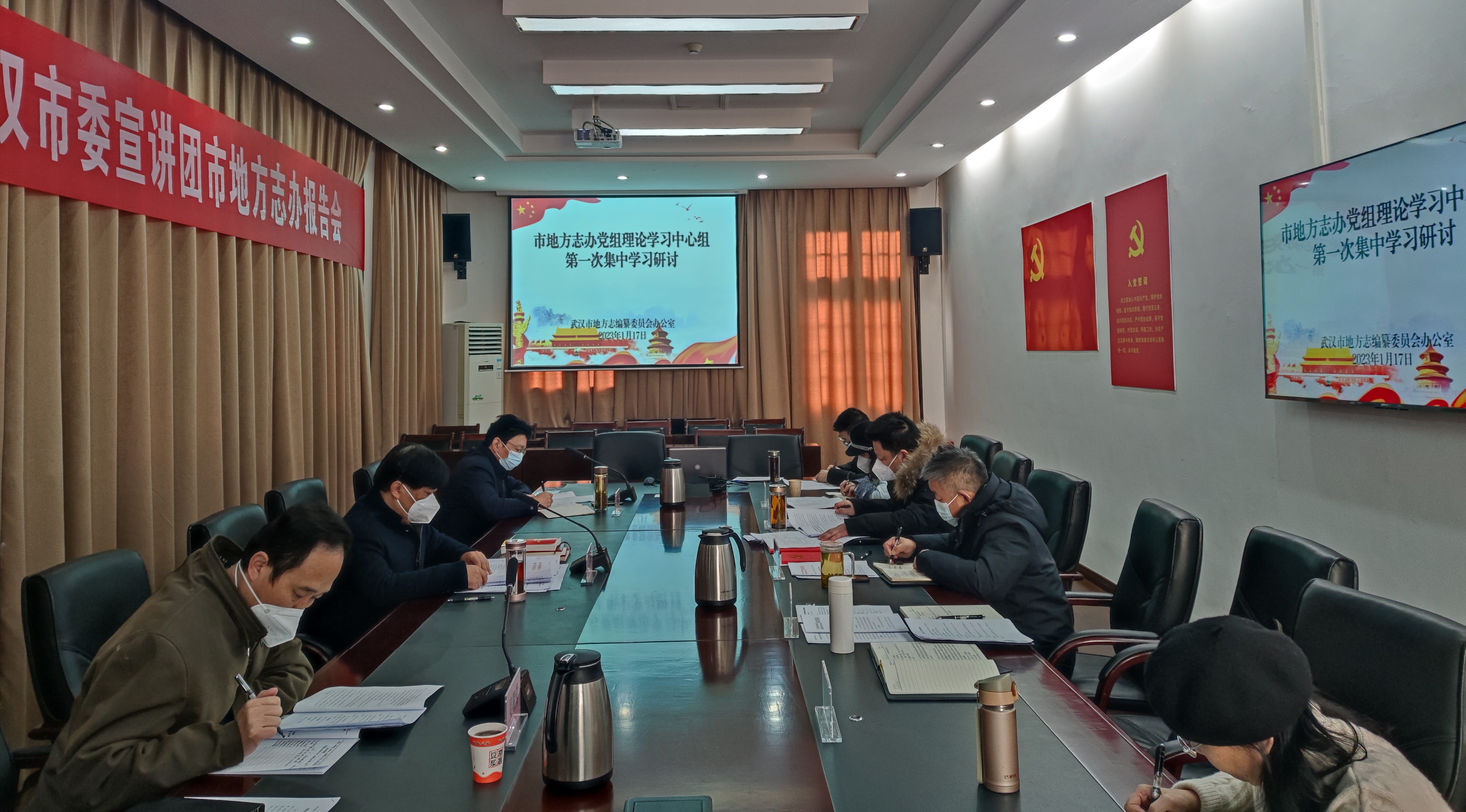 2023年1月17日,武汉市地方志编纂委员会办公室举行党组理论学习中心组2023年第1次集中学习研讨。本次学习的主题是深入学习贯彻习近平新时代中国特色社会主义思想和党的二十大精神,坚持读原著、学原文、悟原理,提高认识、统一思想、增强自信,深化学习领悟,提高政治素养,把握标准要求,切实把思想和行动统一到党中央精神上来,打牢开好民主生活会的思想基础。党组书记、主任王筱武主持会议并讲话,党组成员、副处级以上干部参加。