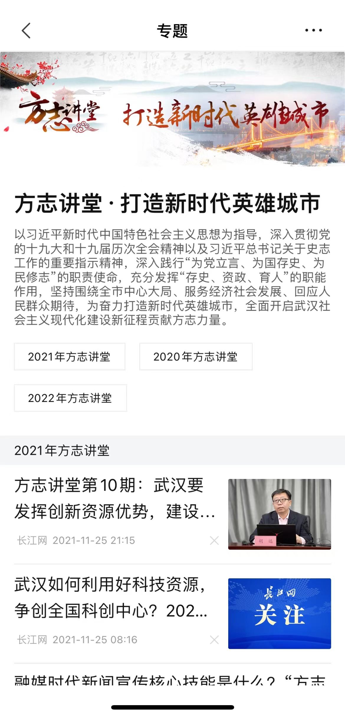 长江网“方志讲堂”专题页面。