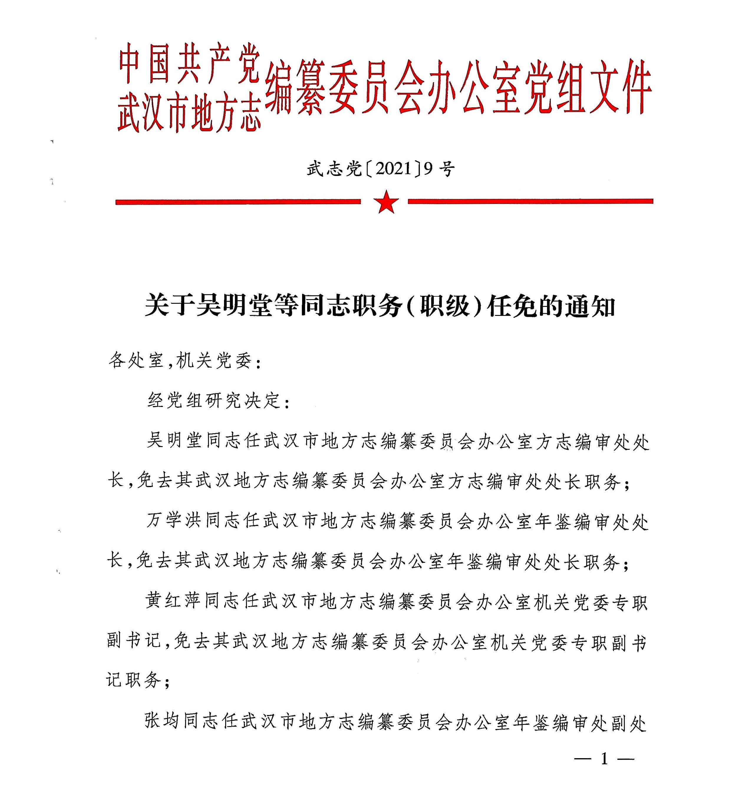 关于吴明堂等同志职务(职级)任免的通知